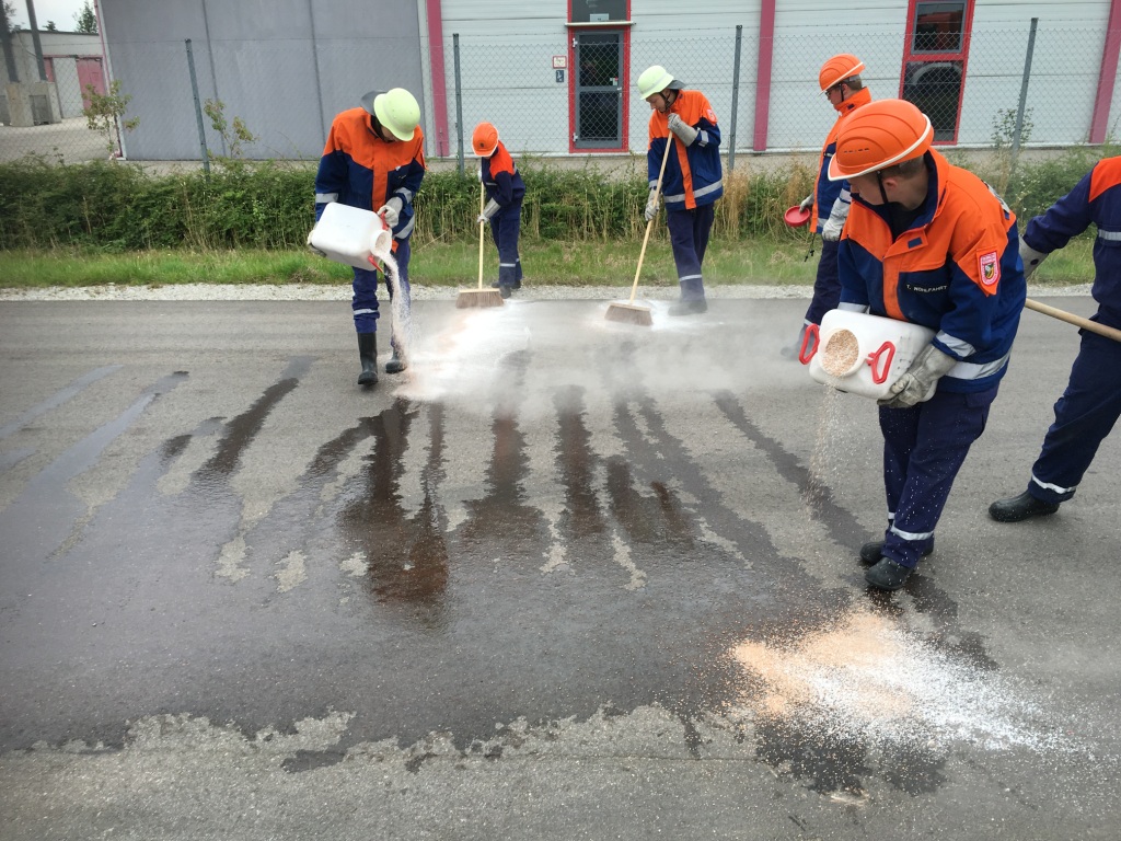 Der Brand des Asthaufens war der erste Einsatz. Anschliessend mussten wir auf Grund einer realen Ölspur von Brodswinden nach Wallersdorf den BF-Tag unterbrechen.