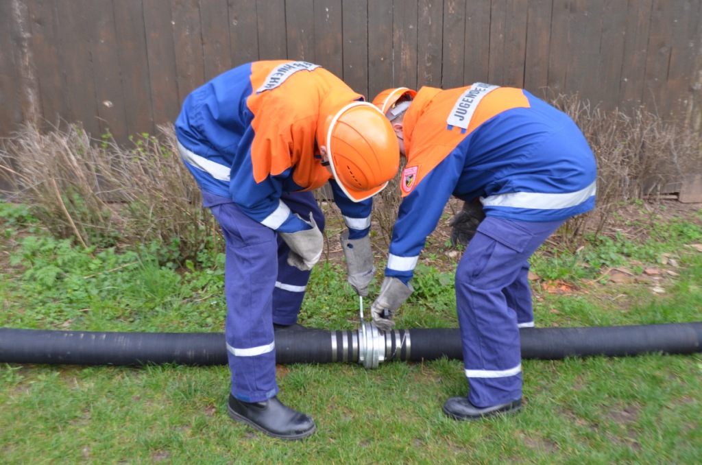 Mit Hilfe einer Saugleitung förderten die Jugendlichen unter Anleitung der Jugendwarte das Wasser aus dem Behälter.