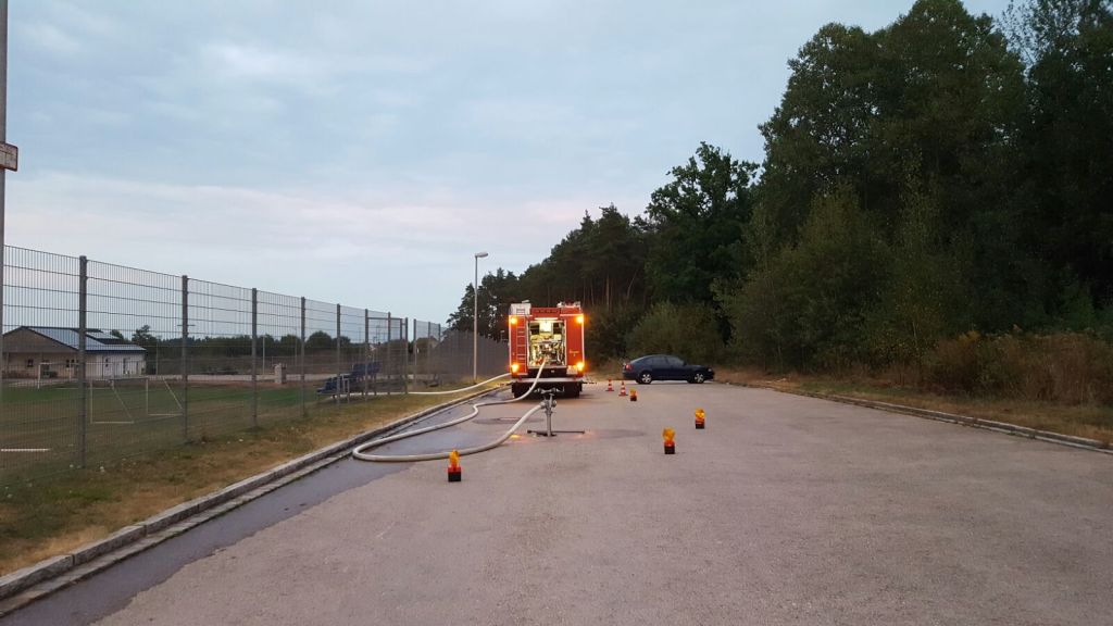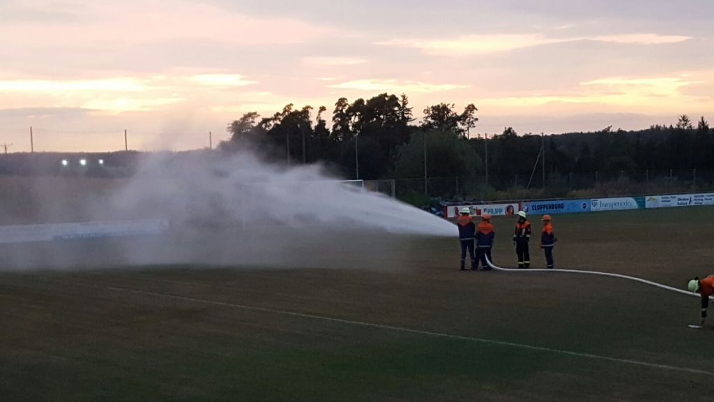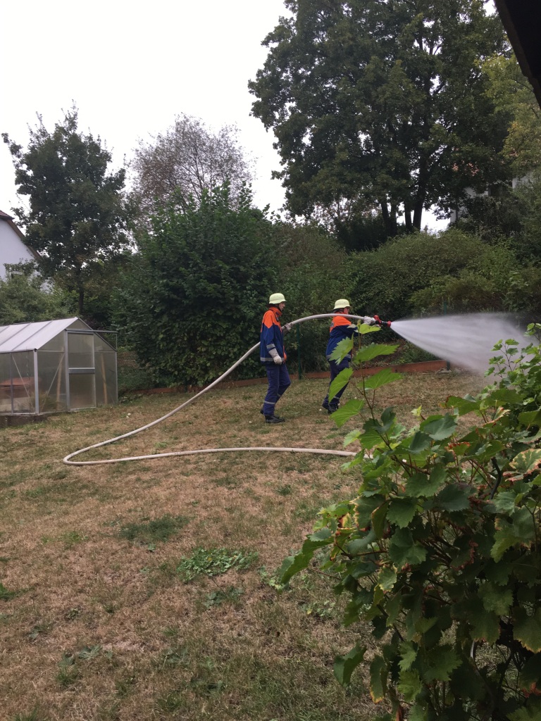 Zuerst wurde vor dem Feuerwehrhaus geübt. Anschließend diente der Sportplatz als Übungsplatz.