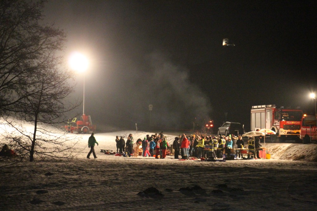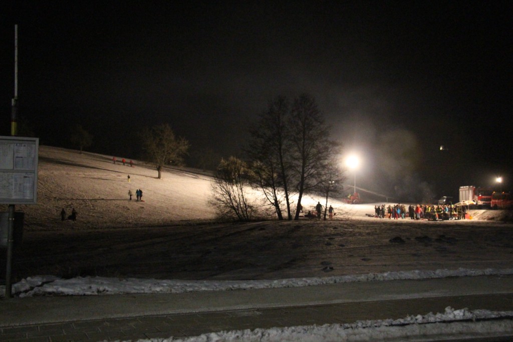 Die Feuerwehr veranstaltete am Schlittenberg in Höfstetten ein Nachtschlittenfahren.