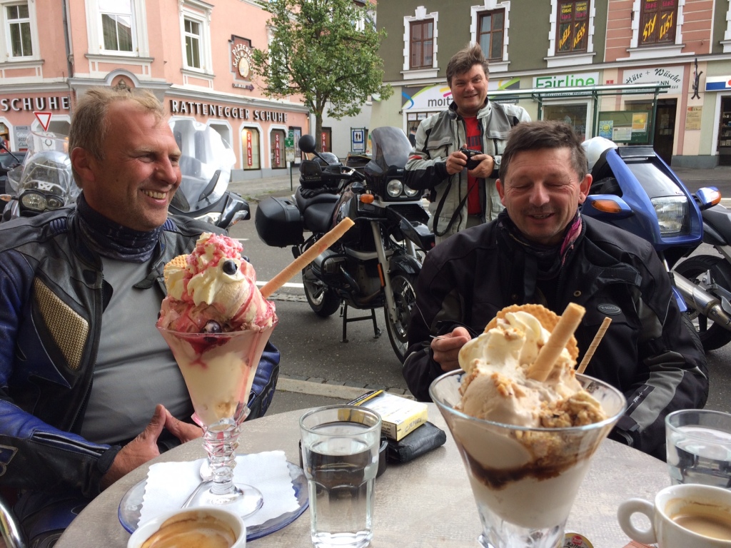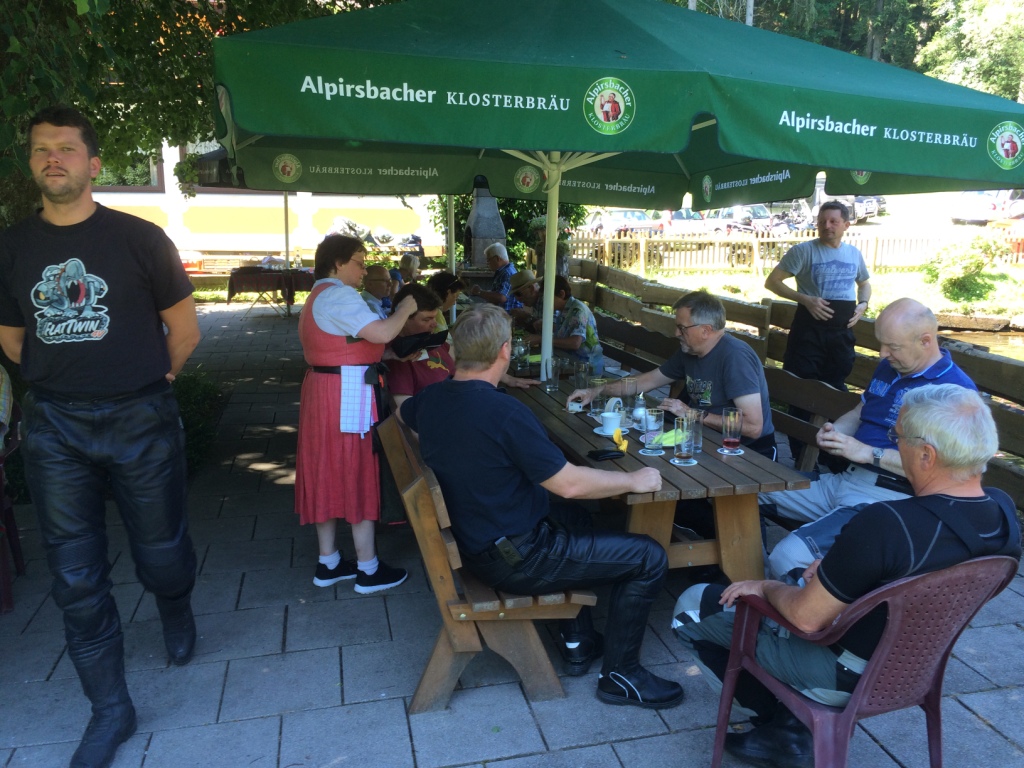 Erst danach wurde es von oben trocken und der schöne Teil der Tour begann. Die Mittagspause konnten wir dann schon bei Sonnenschein im Biergarten in Gnesau