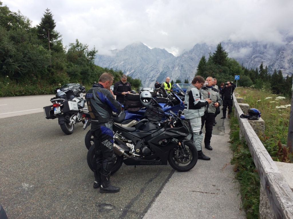 Von dort aus starteten wir am nächsten Morgen über Hermagor in Richtung Slowenien. Durch Kranjsga Gora über den Wurzenpass erreichten wir eine tolle Berglandschaft mit herrlichen kurvigen Pässen. An diesem Nachmittag hatten wir auch ein kleines Schockerlebnis in Form eines Unfalles, an dem einige von uns beteiligt waren. Gott sei Dank gab es bei uns nur einen kleinen Sachschaden. Die Aufregung darüber verdauten wir am Predilsee und am Abend auf der Sonnenterrasse im Hotel.