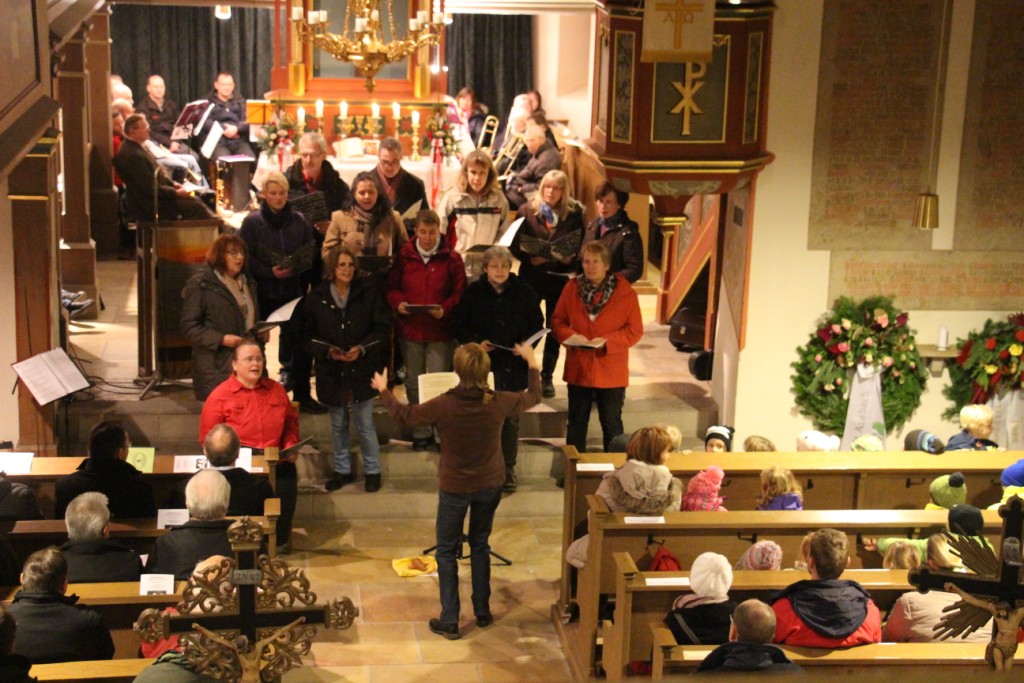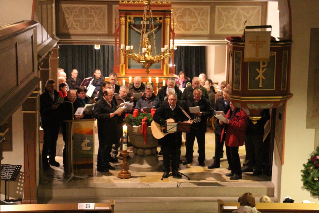 Weihnachtsmarkt mit einer Andacht in der Kirche und viel Musik vom Posaunenchor, dem Männergesangverein, dem Chor unterwegs